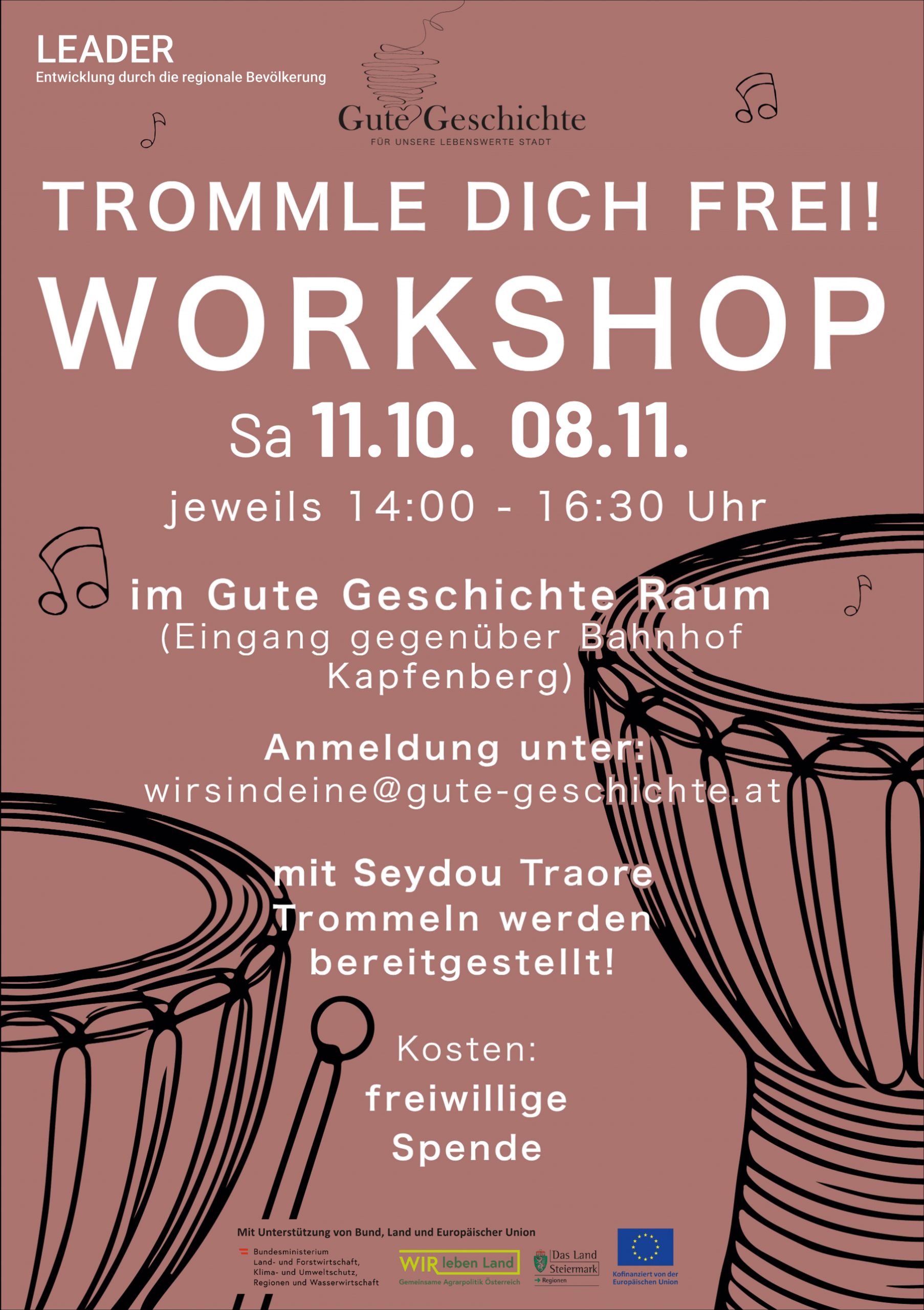 Sa11Okt14:0016:30Trommle dich frei! - Workshop14:00 - 16:30 im Gute Geschichte Raum