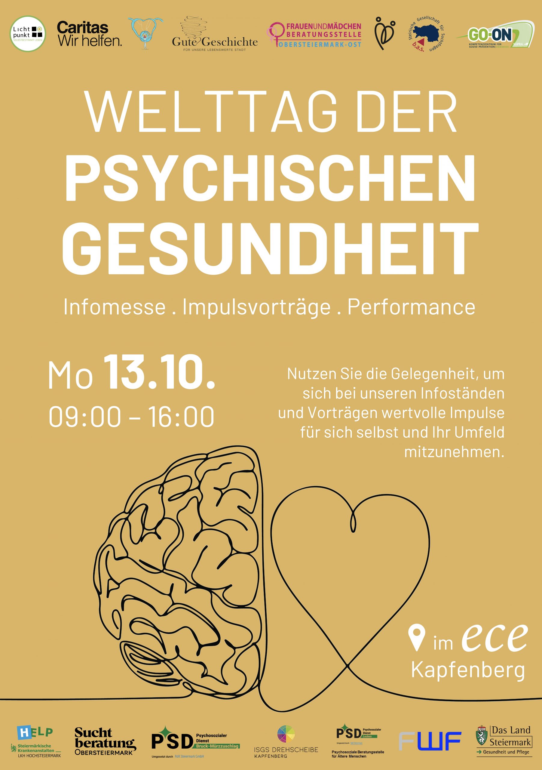 Am 13.10. veranstalten wir von 09.00 – 16.00 in Kooperation mit Verena Reitbauer vom Verein Go-On einen großen Tag der psychischen Gesundheit im ece Kapfenberg.