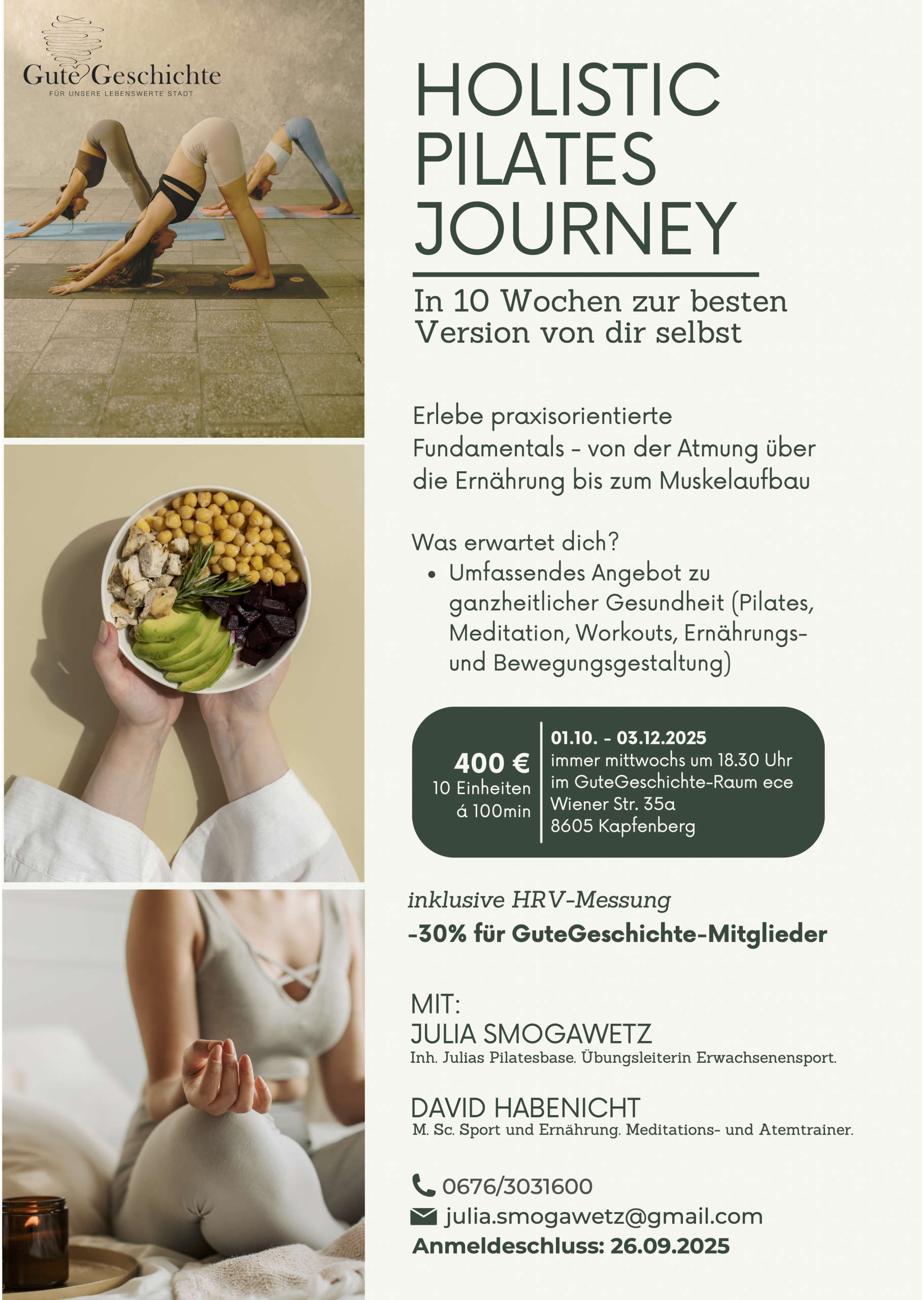 Mi29Okt18:3020:10Holistic Pilates Journey18:30 - 20:10 im Gute Geschichte Raum