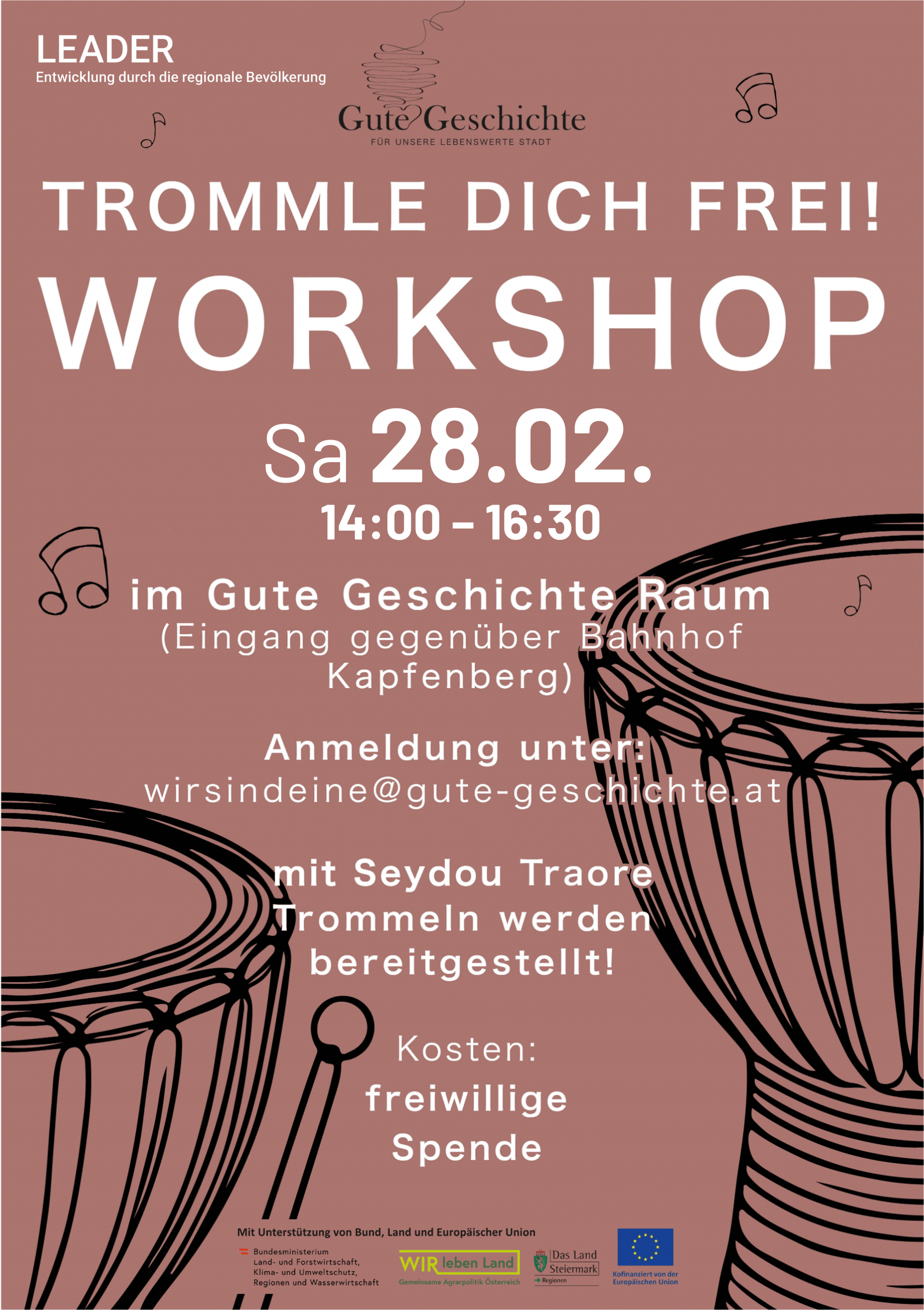Sa28Feb14:0016:30Trommle dich frei! - Workshop14:00 - 16:30 im Gute Geschichte Raum