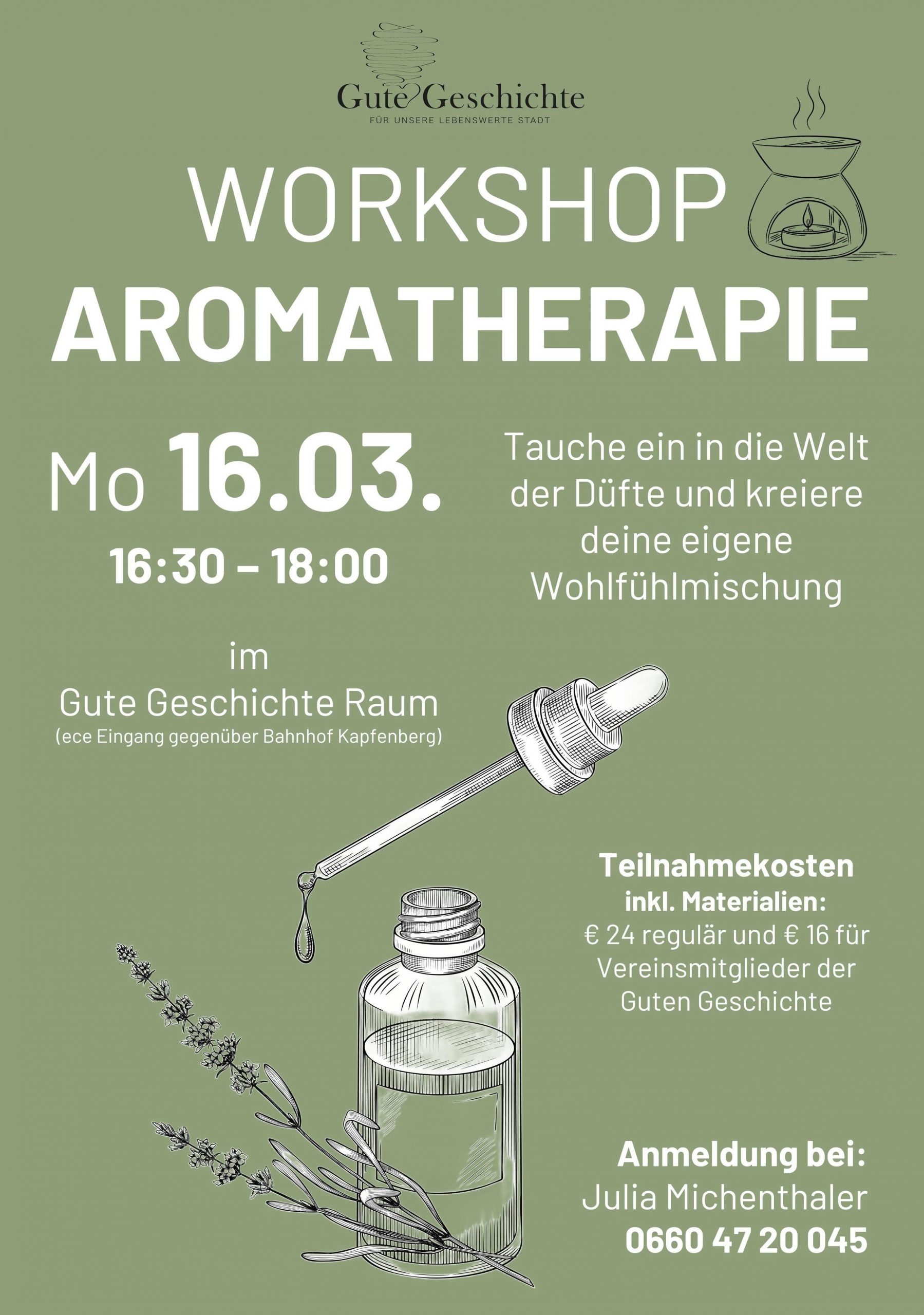 Mo16Mär16:3018:00Aromatherapie - Workshop16:30 - 18:00 im Gute Geschichte Raum