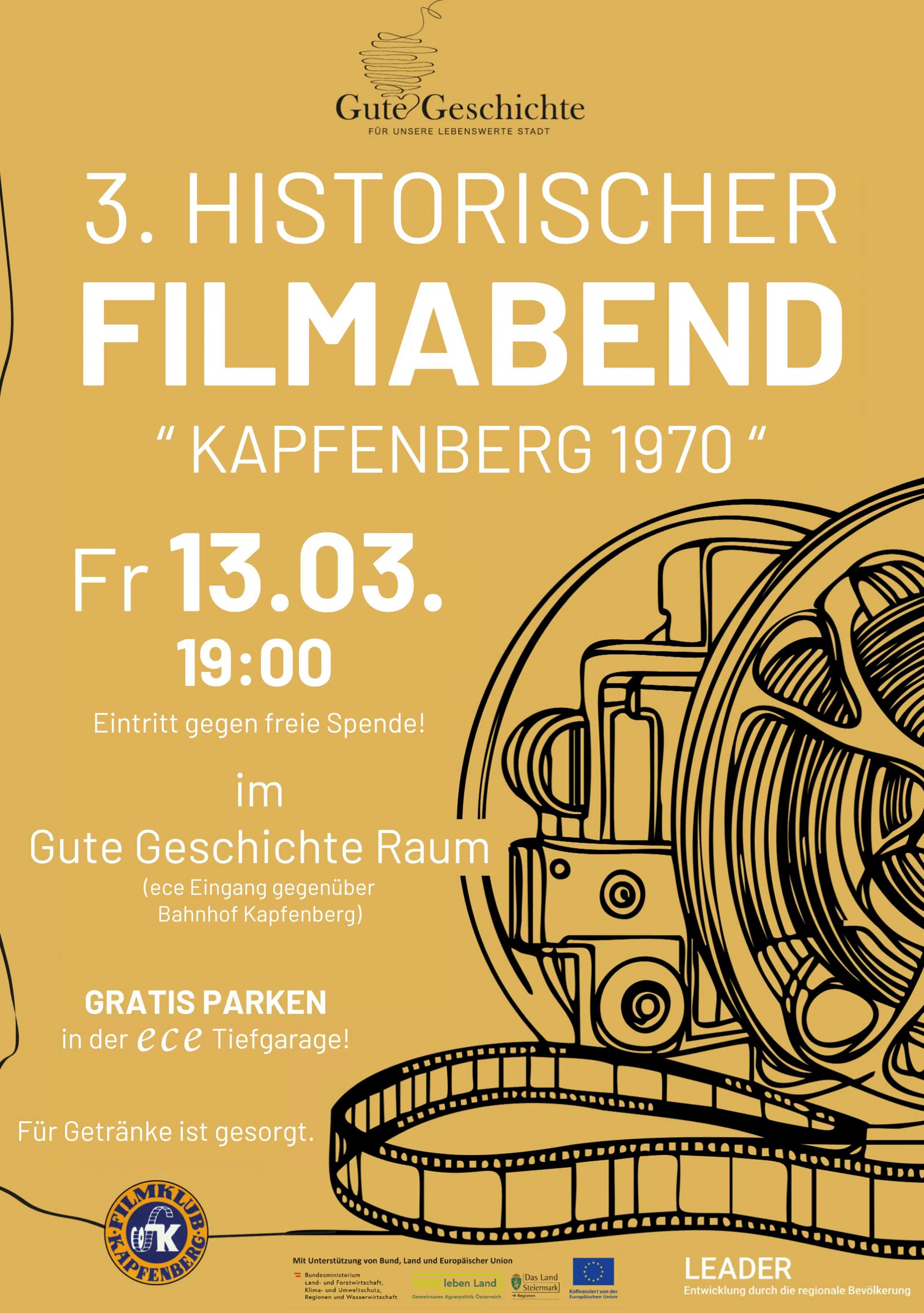 Nach dem erfolgreichen ersten beiden historischen Filmabenden des Vorjahres freuen wir uns ganz besonders gemeinsam mit dem Filmklub Kapfenberg eine Fortsetzung zu veranstalten. Diesmal nehmen wir euch mit auf eine spannende Reise durch Kapfenberg in den 1970ern.