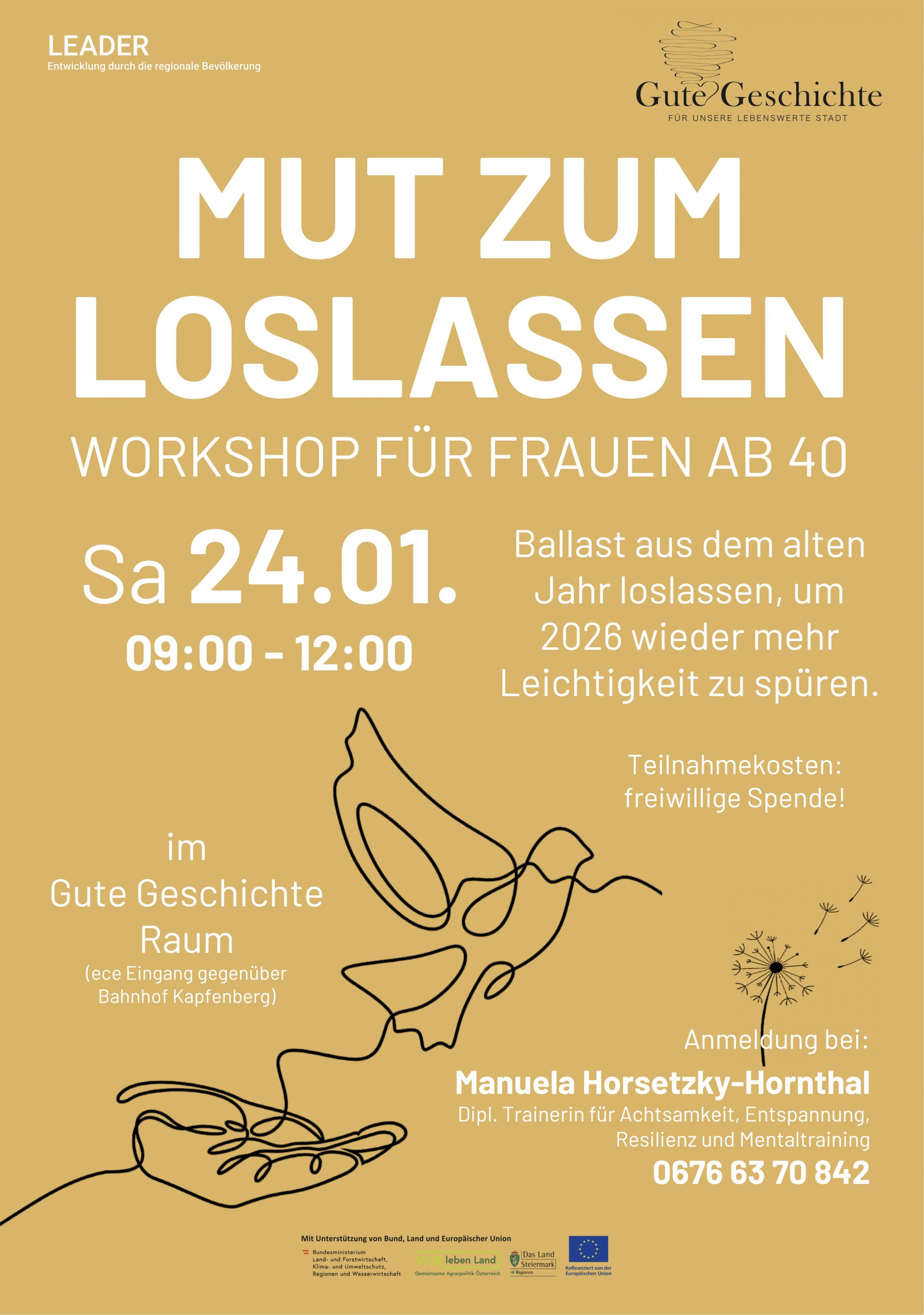 Anmeldung bei Anett Michenthaler unter: 0660 55 999 56 oder anett.michenthaler@outlook.com