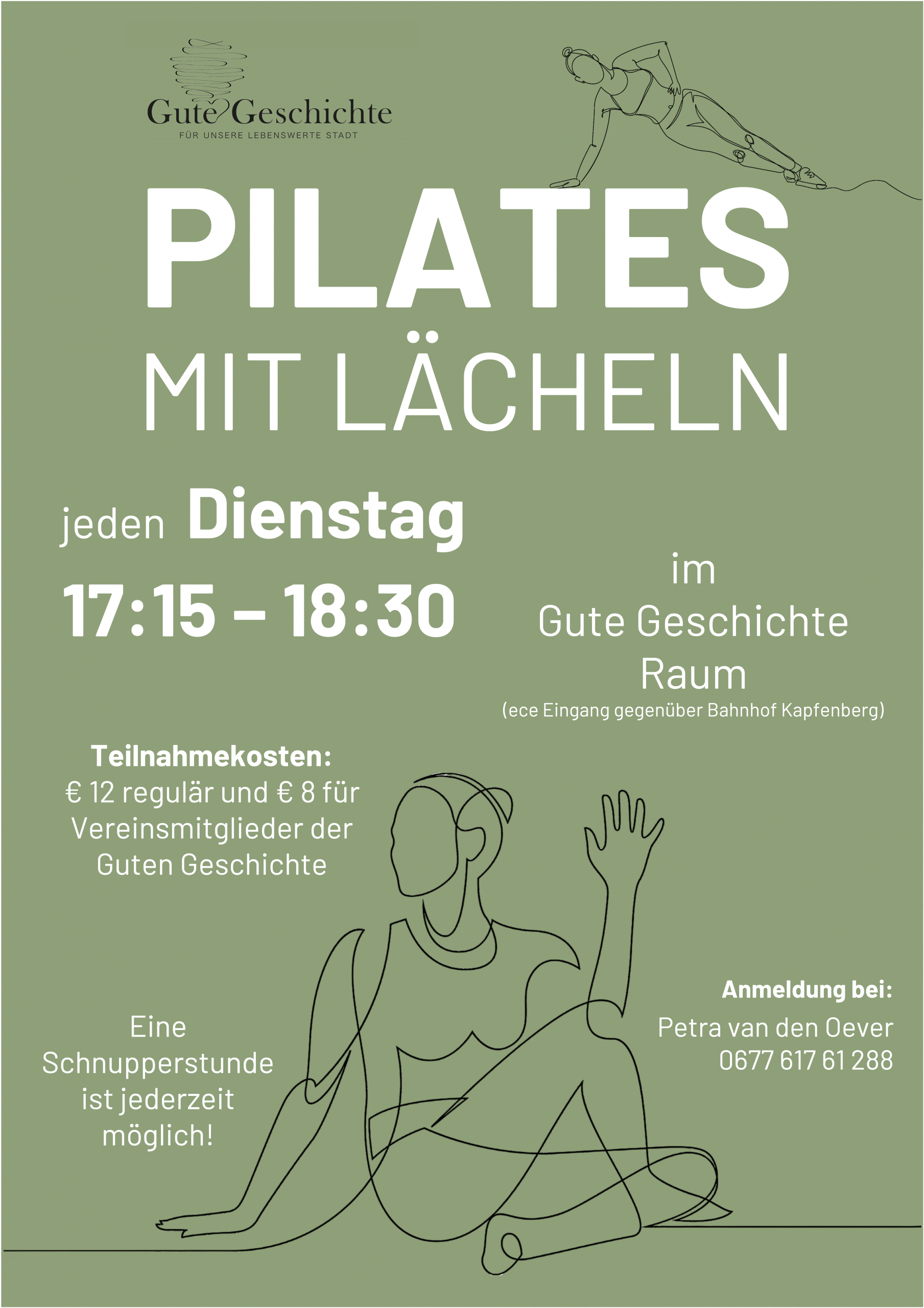Di27Jän17:1518:30Pilates mit Lächeln17:15 - 18:30 im Gute Geschichte Raum